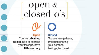 Huruf o yang tidak tertutup sepenuhnya menandakan bahwa si subjek adalah seseorang yang suka bersosialisasi dan dapat mengekspresikan perasaannya dengan baik. Biasanya orang dengan tulisan tangan seperti ini adalah orang yang ekstrovert.
