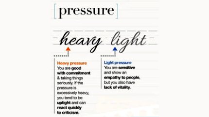 Seseorang yang saat menulis terlihat selalu menulis segala sesuatu dengan tekanan yang kuat menandakan bahwa orang terkait adalah seseorang yang memiliki komitmen tinggi dan selalu serius akan segala sesuatu. Namun apabila tekanan tersebut terlihat terlalu kuat, maka itu malah menandakan orang terkait adalah seseorang yang tidak bisa relaks dan sensitif.