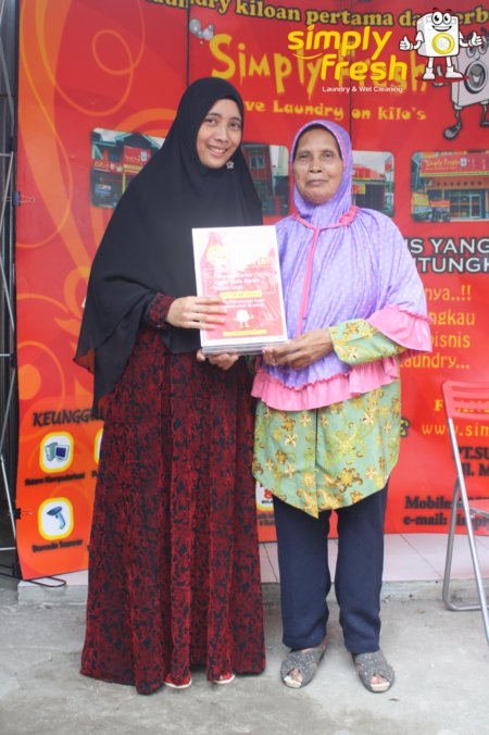 Tak kurang dari 100 paket sembako murah untuk warga yang membutuhkan di sekitar kantor manajemen Simply Fresh Laundry telah disediakan oleh panitia. Bekerjasama dengan pihak RT setempat panitia memberikan sembako dengan harga terjangkau kepada warga yang datang dengan membawa kupon bukti pengambilan sembako dan fotocopy KTP.